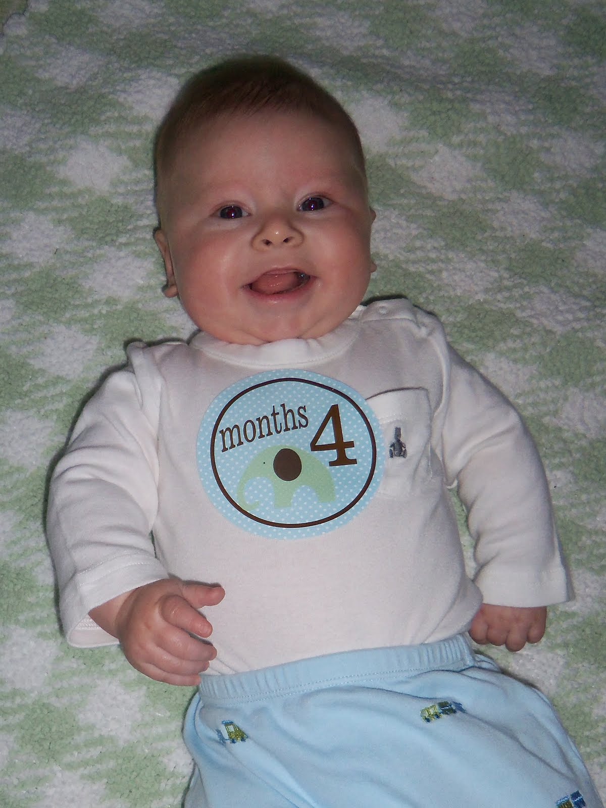 At four months, Henry is weighing in at just under 17 pounds! He is snugly and smiley and we just love him to pieces. In the past month, Henry has rolled over (front to back) four times and mastered his Bumbo seat. We also started putting him in the ExerSaucer, which we call his office, and he loves it! He has become a little drooly and puts everything in his mouth. Henry loves chewing on his hands and "talking" at the top of his lungs! Henry ADORES Sophia and is her biggest fan. He can't take his eyes off of her when she is in the room.Both, Sophia and Henry, had their check-ups yesterday (Thanks, Pop for your assistance!) and they both got glowing reports. Raph and I are so thankful to have such beautiful and healthy children!